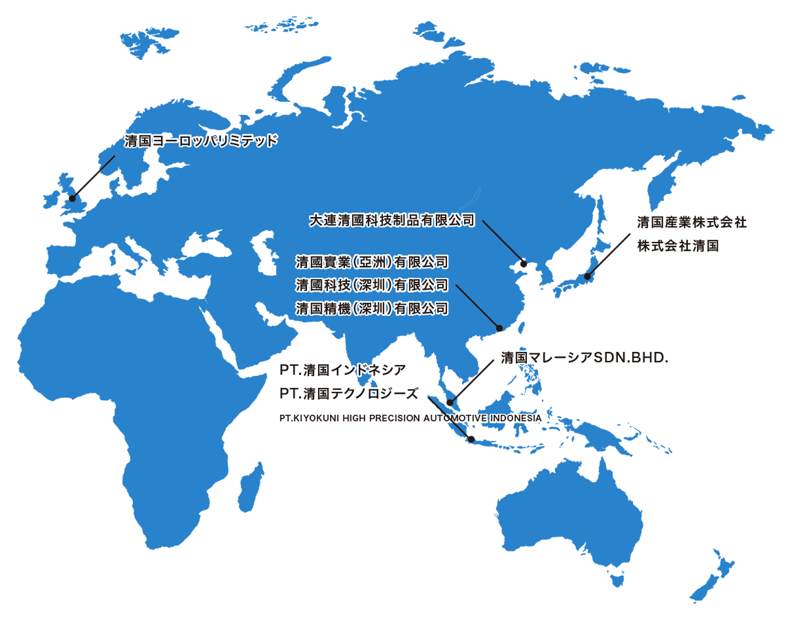 (株)清国を中心に、拠点間の蓄積された技術力を活用し、各拠点での総合的な設計・組立支援が可能です。